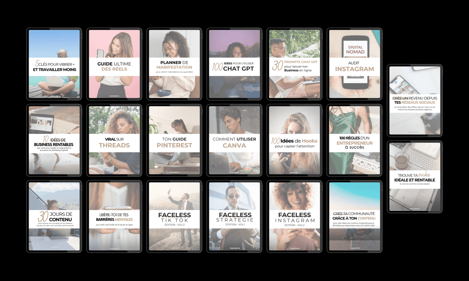 À l'intérieur de Code Liberté : tu auras accès à 20 produits PLR à vendre qui sont créer pour toi et tes clients, tu peux les revendre à des prix très attractifs allant de 47 € à 297€ pour générer tes premiers revenus passifs.